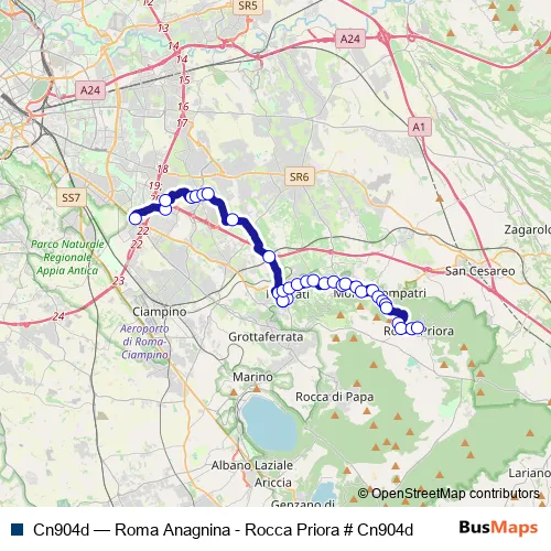 Click here to view the nearest Cn904d - Roma Anagnina - Rocca Priora # Cn904d bus stop.