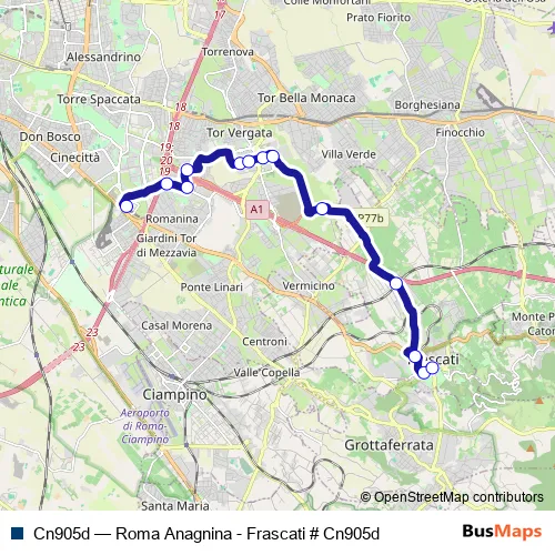 Click here to view the nearest Cn905d - Roma Anagnina - Frascati # Cn905d bus stop.