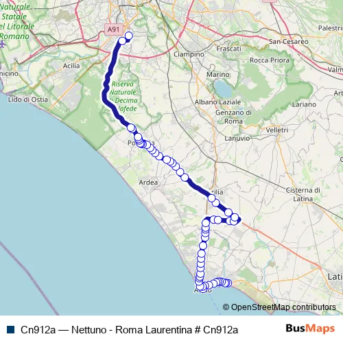 Click here to view the nearest Cn912a - Nettuno - Roma Laurentina # Cn912a bus stop.