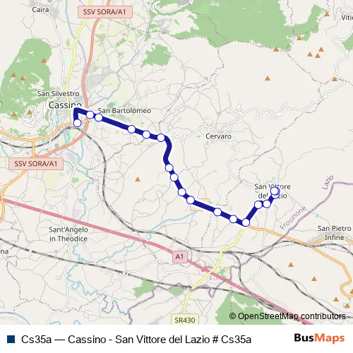 See why over 2 million users trust and consider busmaps.com as the best public transport website. busmaps gives you San Vittore del Lazio Buses suggested routes, real-time bus tracker, line route maps in San Vittore del Lazio, and helps to find the closest Cs35a bus stops near you. No internet available? Download an offline PDF map and bus schedule for the Cs35a bus to take on your trip.
