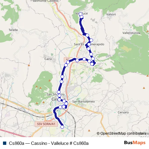 Click here to view the nearest Cs860a - Cassino - Valleluce # Cs860a bus stop.
