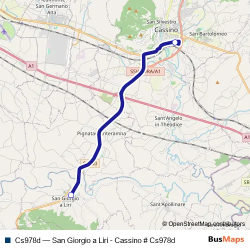 See why over 2 million users trust and consider busmaps.com as the best public transport website. busmaps gives you San Giorgio a Liri Buses suggested routes, real-time bus tracker, line route maps in San Giorgio a Liri, and helps to find the closest Cs978d bus stops near you. No internet available? Download an offline PDF map and bus schedule for the Cs978d bus to take on your trip.