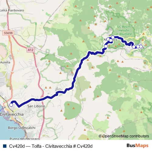 Click here to view the nearest Cv420d - Tolfa - Civitavecchia # Cv420d bus stop.
