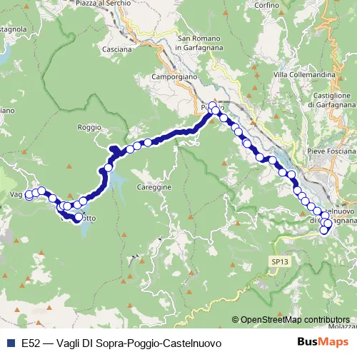 Click here to view the nearest E52 - Vagli DI Sopra-Poggio-Castelnuovo bus stop.
