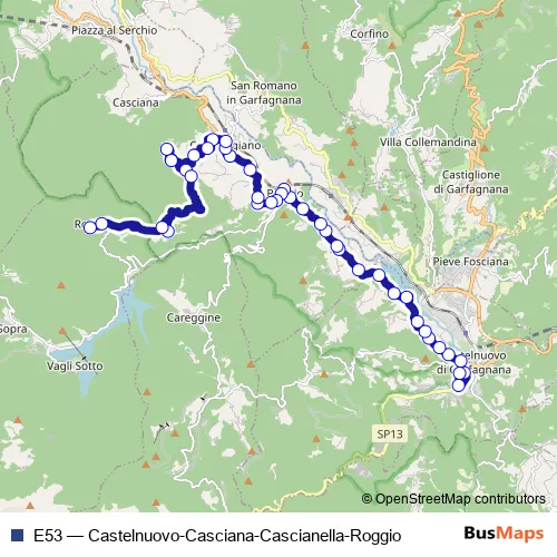 See why over 2 million users trust and consider busmaps.com as the best public transport website. busmaps gives you Camporgiano Buses suggested routes, real-time bus tracker, line route maps in Camporgiano, and helps to find the closest E53 bus stops near you. No internet available? Download an offline PDF map and bus schedule for the E53 bus to take on your trip.