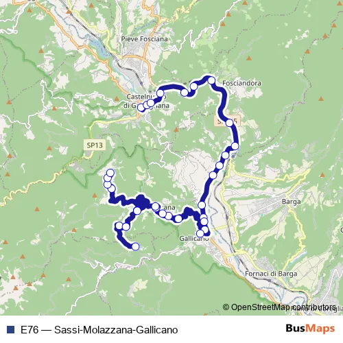 Bus E76 - Sassi-Molazzana-Gallicano Schedule in Molazzana