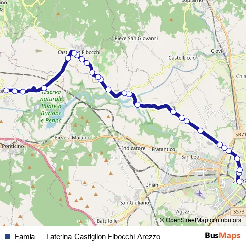 The first stop of the Famla bus route is Arezzo Terminal and the last stop is Laterina (Paese). Famla (Laterina-Castiglion Fibocchi-Arezzo) is operational during tutti i giorni.