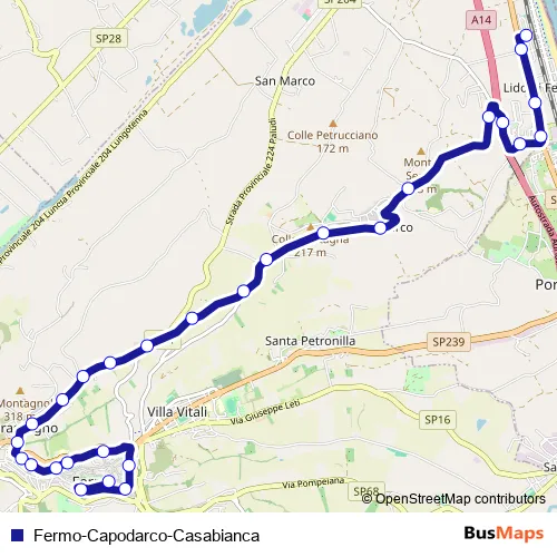 Additional information: Fermo-Capodarco-Casabianca has 28 stops and the total trip duration for this route is approximately 30 minutes.