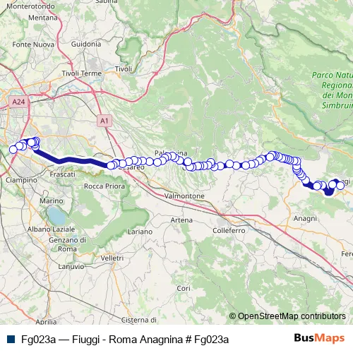 Services on the Fg023a - Fiuggi - Roma Anagnina # Fg023a bus stop at 18:25 on lunedì, martedì, mercoledì, giovedì, venerdì, sabato.
