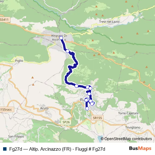 Services on the Fg27d - Altip. Arcinazzo (FR) - Fiuggi # Fg27d bus start at 14:20 on lunedì, martedì, mercoledì, giovedì, venerdì, sabato.