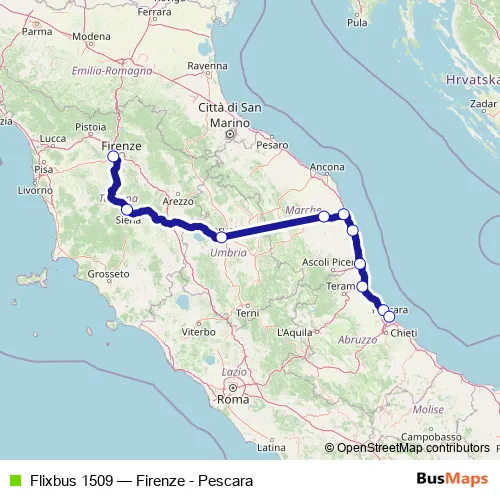Click here to view the nearest Flixbus 1509 - Firenze - Pescara bus stop.