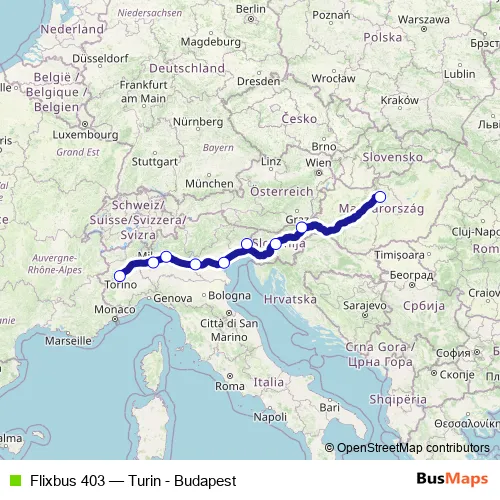 Bus Flixbus 403 - Turin - Budapest: Full Schedule in Ljubljana