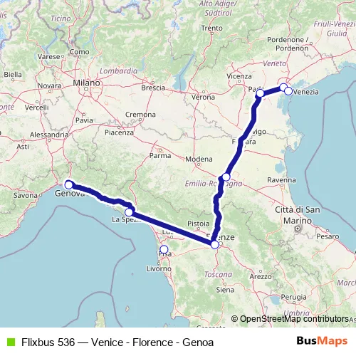 Click here to view the nearest Flixbus 536 - Venice - Florence - Genoa bus stop.