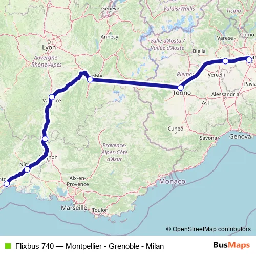 Click here to view the nearest Flixbus 740 - Montpellier - Grenoble - Milan bus stop.