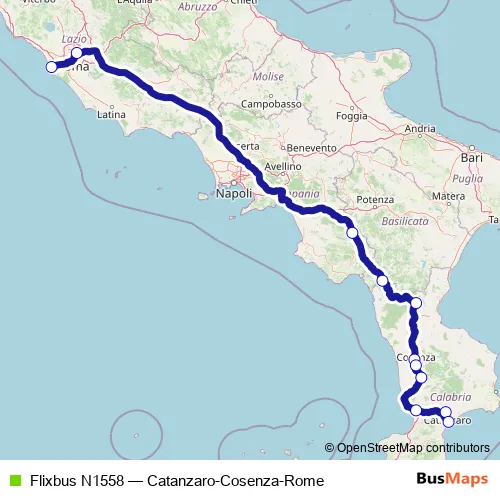 Click here to view the nearest Flixbus N1558 - Catanzaro-Cosenza-Rome bus stop.