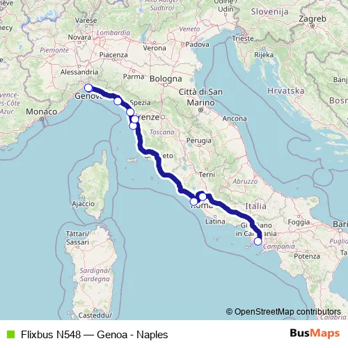 Click here to view the nearest Flixbus N548 - Genoa - Naples bus stop.