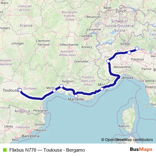 Bus Flixbus N778 - Toulouse - Bergamo: Full Schedule in Toulouse