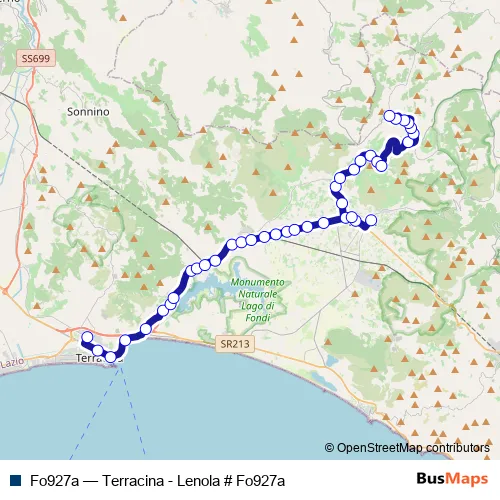 Click here to view the nearest Fo927a - Terracina - Lenola # Fo927a bus stop.
