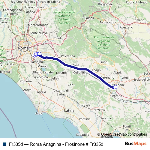 Bus Fr335d - Roma Anagnina - Frosinone # Fr335d in Rome: Stops & Timetable