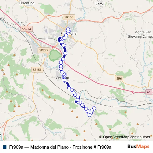 Bus Fr909a - Madonna del Piano - Frosinone # Fr909a Schedule in Ceccano
