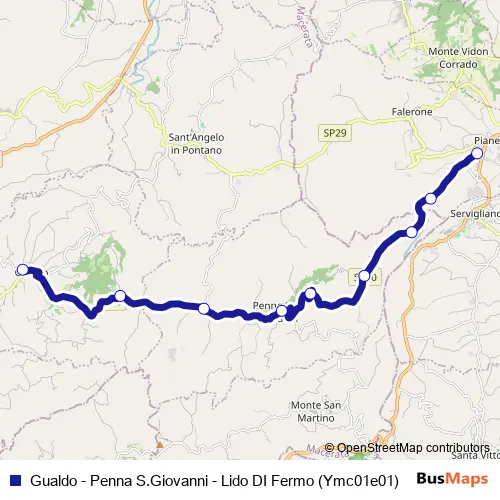 Gualdo - Penna S.Giovanni - Lido DI Fermo (Ymc01e01) bus Route Map