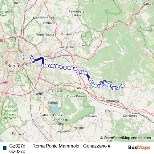The first stop of the Gz027d bus route is Roma | Ponte Mammolo (Metro B) # f9014 and the last stop is Genazzano DEP # Gzdep. Gz027d (Roma Ponte Mammolo - Genazzano # Gz027d) is operational during nei giorni feriali.