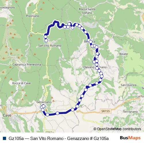 See why over 2 million users trust and consider busmaps.com as the best public transport website. busmaps gives you Olevano Romano Buses suggested routes, real-time bus tracker, line route maps in Olevano Romano, and helps to find the closest Gz105a bus stops near you. No internet available? Download an offline PDF map and bus schedule for the Gz105a bus to take on your trip.