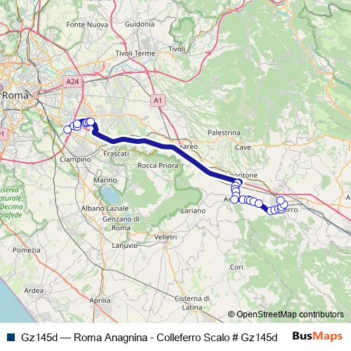 Click here to view the nearest Gz145d - Roma Anagnina - Colleferro Scalo # Gz145d bus stop.