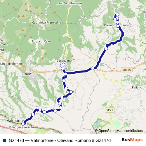 Click here to view the nearest Gz147d - Valmontone - Olevano Romano # Gz147d bus stop.