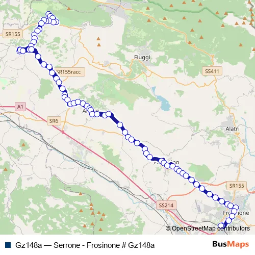 Bus Gz148a - Serrone - Frosinone # Gz148a Schedule in Anagni