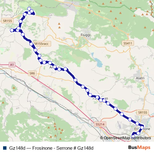Bus Gz148d - Frosinone - Serrone # Gz148d Schedule in Anagni