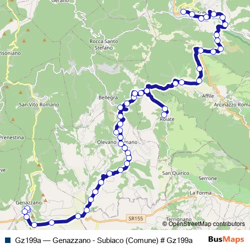 See why over 2 million users trust and consider busmaps.com as the best public transport website. busmaps gives you Olevano Romano Buses suggested routes, real-time bus tracker, line route maps in Olevano Romano, and helps to find the closest Gz199a bus stops near you. No internet available? Download an offline PDF map and bus schedule for the Gz199a bus to take on your trip.