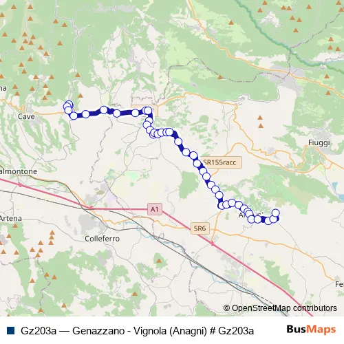 Services on the Gz203a - Genazzano - Vignola (Anagni) # Gz203a bus start at 12:55 on lunedì, martedì, mercoledì, giovedì, venerdì, sabato.