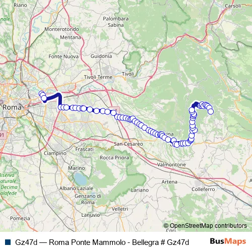Bus Gz47d - Roma Ponte Mammolo - Bellegra # Gz47d in Rome: Stops & Timetable