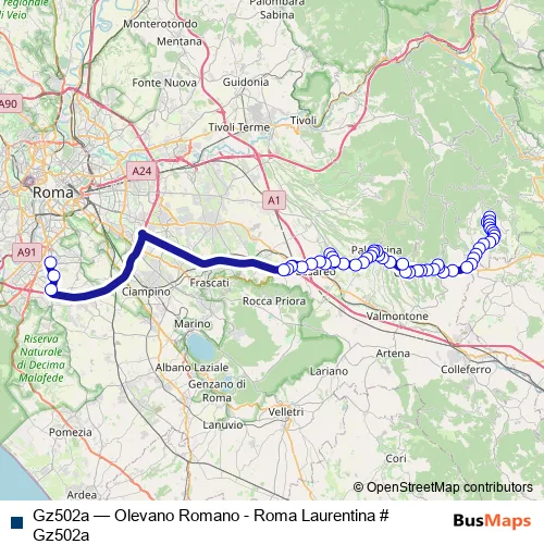Click here to view the nearest Gz502a - Olevano Romano - Roma Laurentina # Gz502a bus stop.