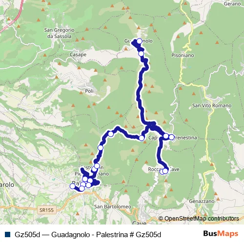 See why over 2 million users trust and consider busmaps.com as the best public transport website. busmaps gives you Castel San Pietro Romano Buses suggested routes, real-time bus tracker, line route maps in Castel San Pietro Romano, and helps to find the closest Gz505d bus stops near you. No internet available? Download an offline PDF map and bus schedule for the Gz505d bus to take on your trip.