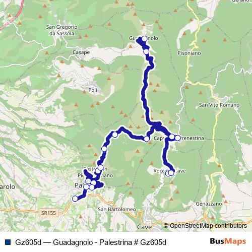 See why over 2 million users trust and consider busmaps.com as the best public transport website. busmaps gives you Castel San Pietro Romano Buses suggested routes, real-time bus tracker, line route maps in Castel San Pietro Romano, and helps to find the closest Gz605d bus stops near you. No internet available? Download an offline PDF map and bus schedule for the Gz605d bus to take on your trip.