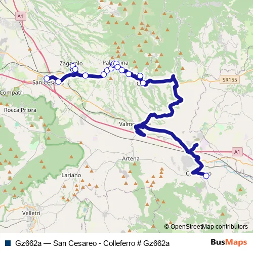 Bus Gz662a - San Cesareo - Colleferro # Gz662a in Palestrina: Stops & Timetable