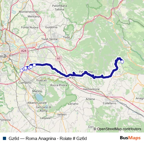 Click here to view the nearest Gz6d - Roma Anagnina - Roiate # Gz6d bus stop.