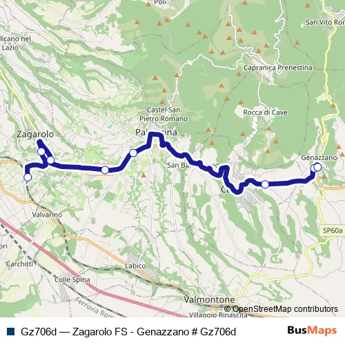 Bus Gz706d - Zagarolo FS - Genazzano # Gz706d in Genazzano: Stops & Timetable
