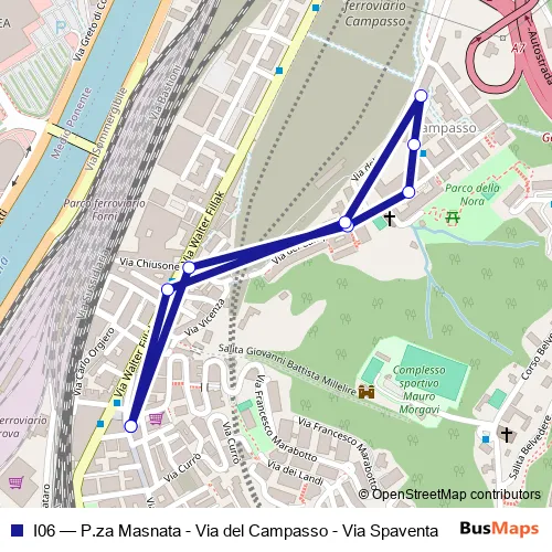 Click here to view the nearest I06 - P.za Masnata - Via del Campasso - Via Spaventa bus stop.