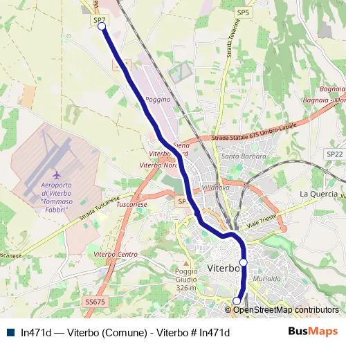 See why over 2 million users trust and consider busmaps.com as the best public transport website. busmaps gives you Viterbo Buses suggested routes, real-time bus tracker, line route maps in Viterbo, and helps to find the closest In471d bus stops near you. No internet available? Download an offline PDF map and bus schedule for the In471d bus to take on your trip.