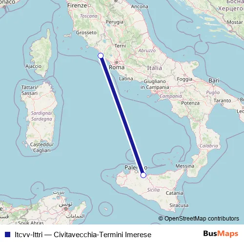 The first stop of the Itcvv-Ittri ferry route is Civitavecchia and the last stop is Termini Imerese. Itcvv-Ittri (Civitavecchia-Termini Imerese) is operational during tutti i giorni.
