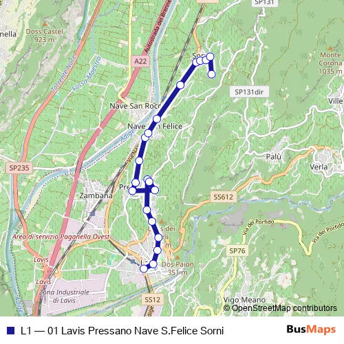 The first stop of the L1 bus route is Lavis Via Nazionale and the last stop is Sorni. L1 (01 Lavis Pressano Nave S.Felice Sorni) is operational during tutti i giorni.