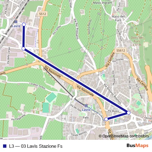 The first stop of the L3 bus route is Lavis Stazione Fs and the last stop is Lavis Via Nazionale. L3 (03 Lavis Stazione Fs) is operational during nei giorni feriali.
