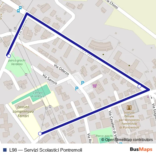 The first stop of the L98 bus route is Pontremoli and the last stop is Via Iv Novembre Scuole. L98 (Servizi Scolastici Pontremoli) is operational during tutti i giorni.
