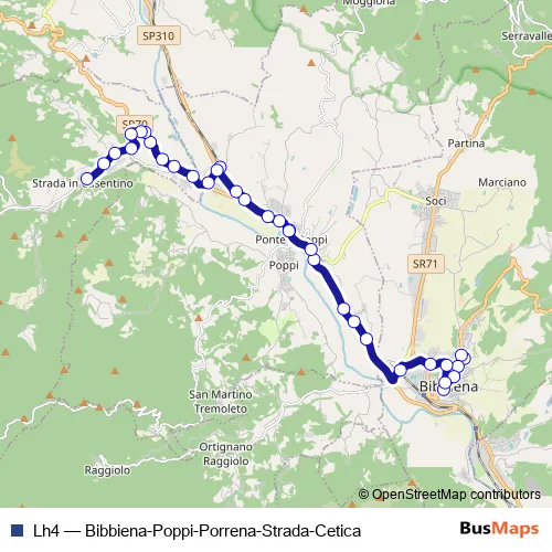 Click here to view the nearest Lh4 - Bibbiena-Poppi-Porrena-Strada-Cetica bus stop.