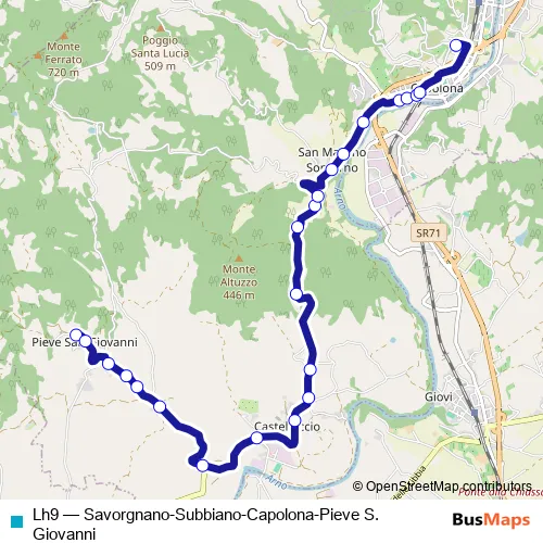 Click here to view the nearest Lh9 - Savorgnano-Subbiano-Capolona-Pieve S. Giovanni bus stop.