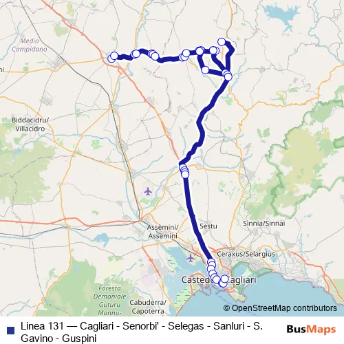 Click here to view the nearest Linea 131 - Cagliari - Senorbi' - Selegas - Sanluri - S. Gavino - Guspini bus stop.