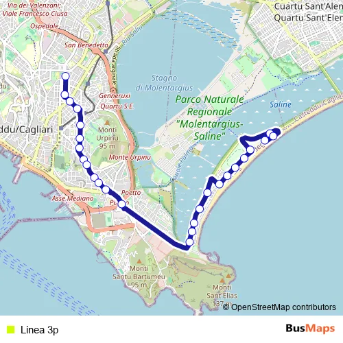 See why over 2 million users trust and consider busmaps.com as the best public transport website. busmaps gives you Cagliari Buses suggested routes, real-time bus tracker, line route maps in Cagliari, and helps to find the closest Linea 3p bus stops near you. No internet available? Download an offline PDF map and bus schedule for the Linea 3p bus to take on your trip.